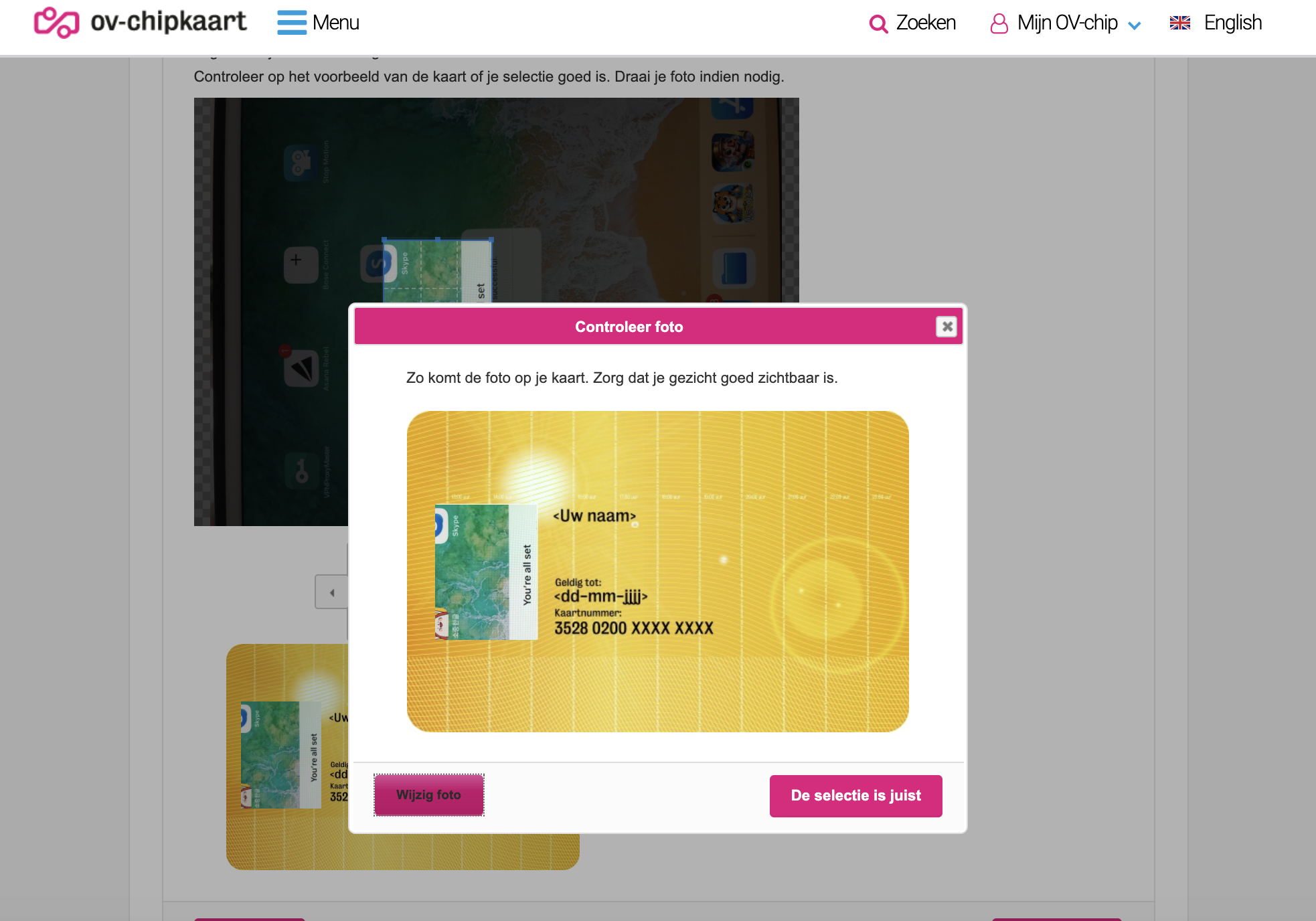 네덜란드 은행 계좌와 본인 얼굴이 식별가능한 jpg 파일이 있다면 OV-Chipkaart 의 70%는 성공! 사진의 경우 본인 식별이 가능한 사진이면 등록 가능하며 증명사진이 아니어도 무방하다.